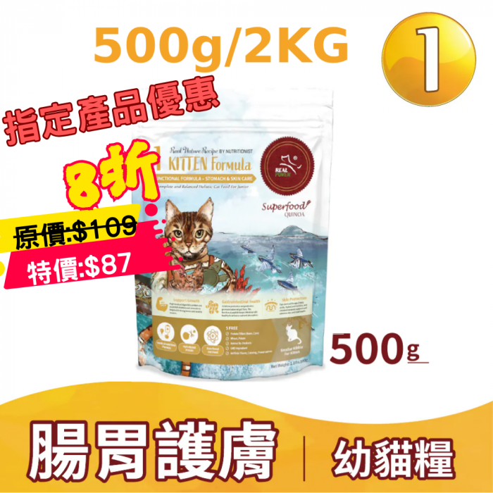 ❗限時優惠8折❗ 幼貓糧1號 腸胃護膚配方 - 500g / 2Kg